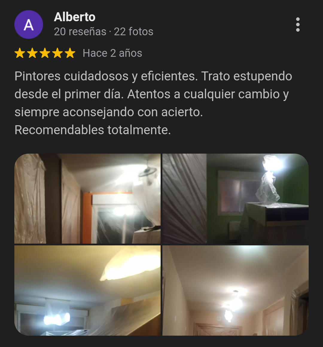Desde hace muchos años el boca a boca a sido una de las fuentes detrabajo mas fructiferas y esto es debido a que la mayoria de nuestros clientes tienen buenas opiniones de nuestros pintores en Las Rozas, es por esto que puedes consultar nuestras reseñas